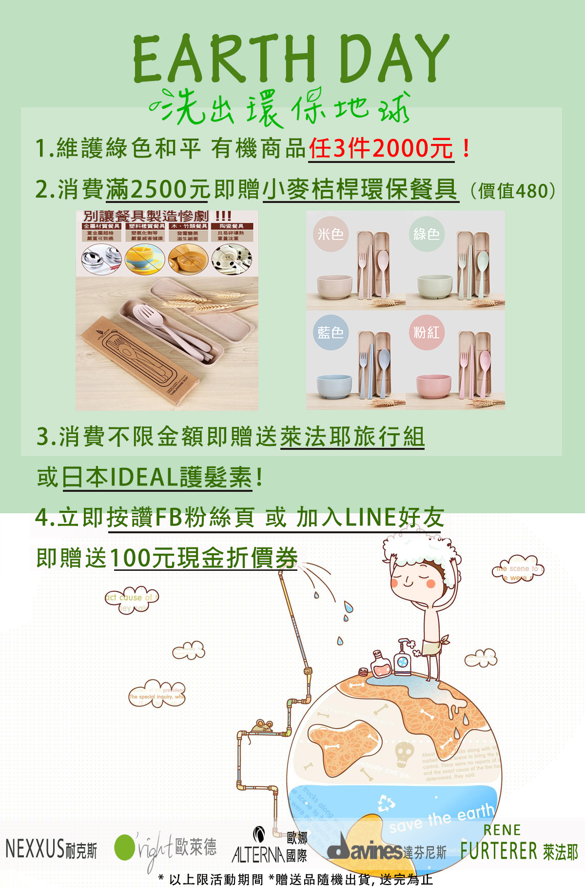 維護綠色和平 使用有機商品 停止化學物質對環境的傷害!活動即日起至4月30日!